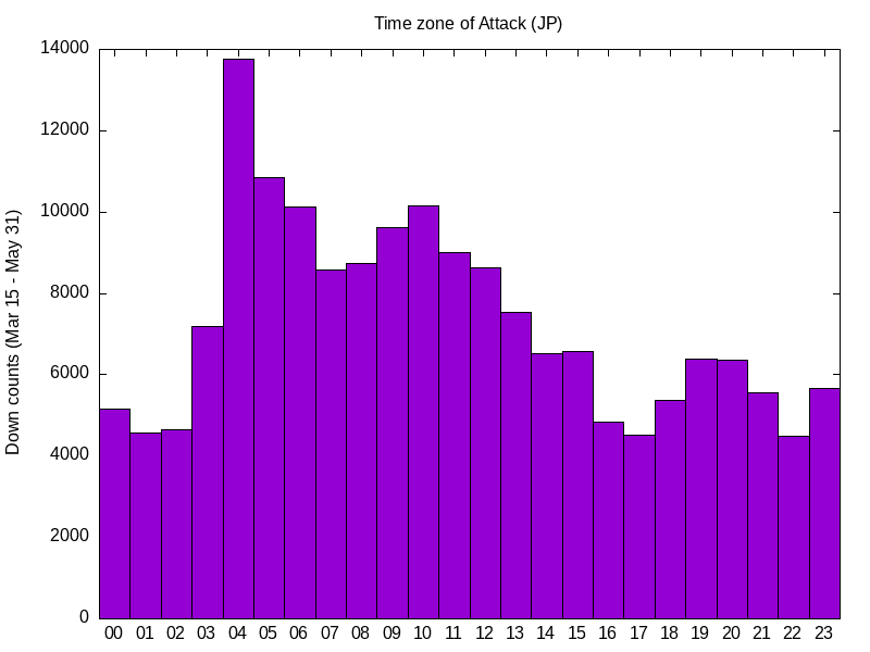TCP 3,862 / IPアドレス総数 26,514 = 15% (5月分)