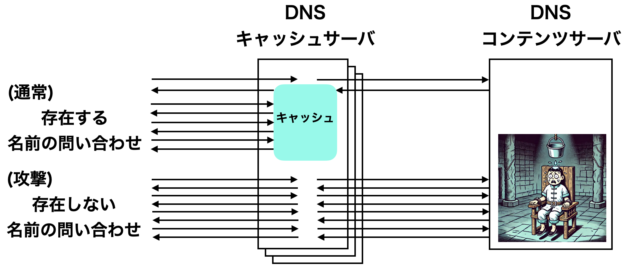 DNS 水責め (Chinese Warter Torture) の図
